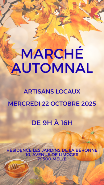 Venez profiter de la douceur de l'automne au marché de la résidence qui se tiendra le mercredi 22 octobre, de 9h à 16h. 🎃🌰